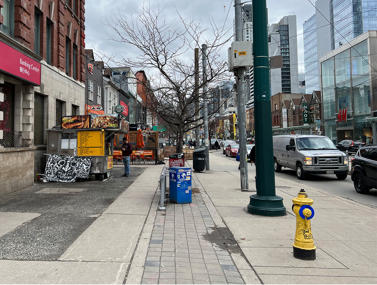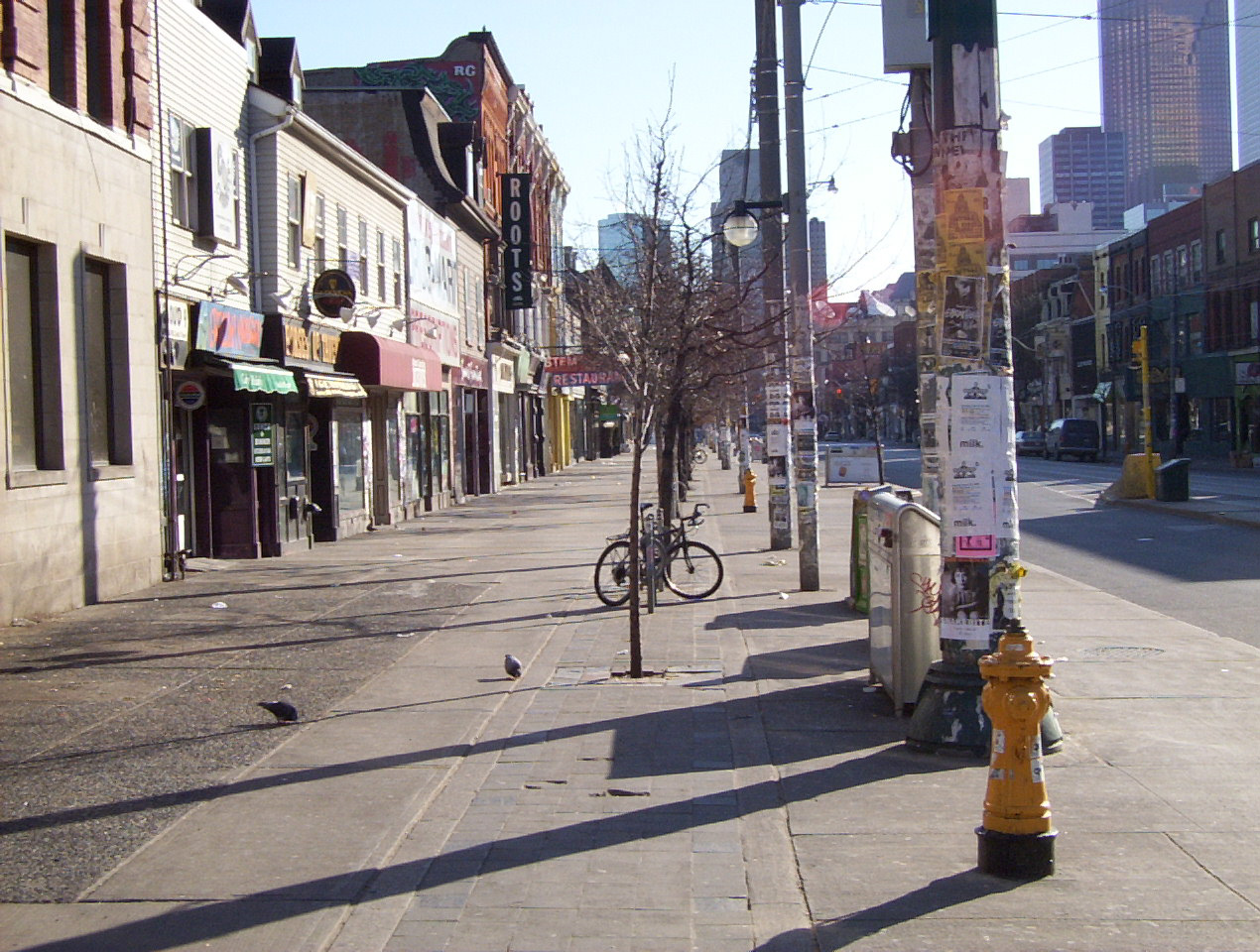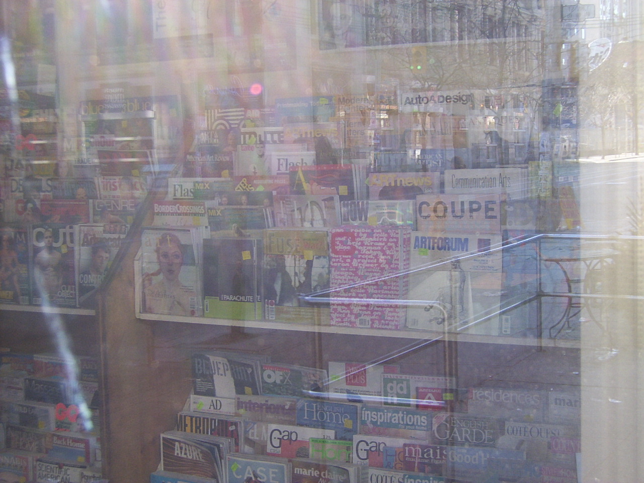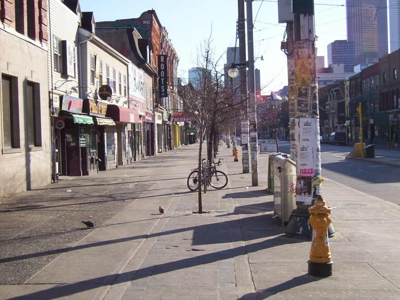 Through the window of what was Pages bookstore at 256 Queen St West, which in March 2022 was for lease and vacant.