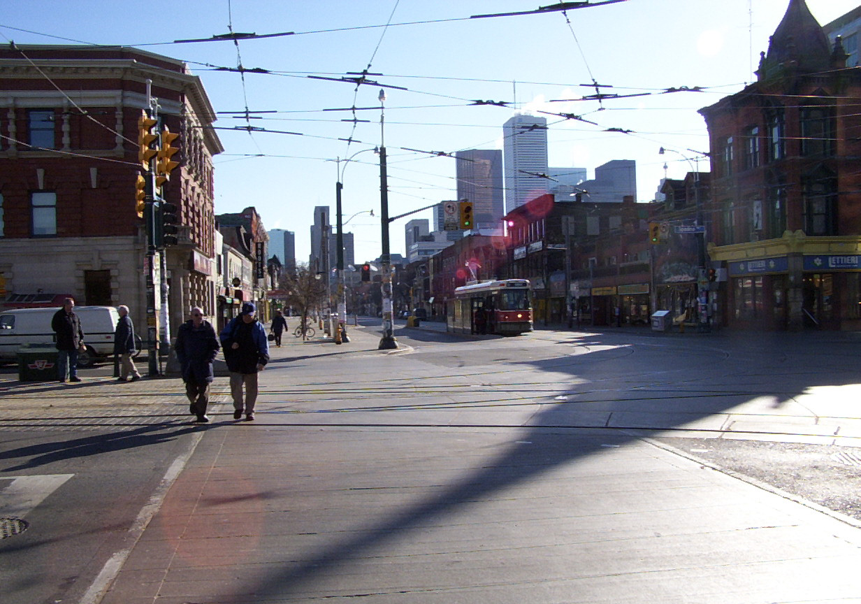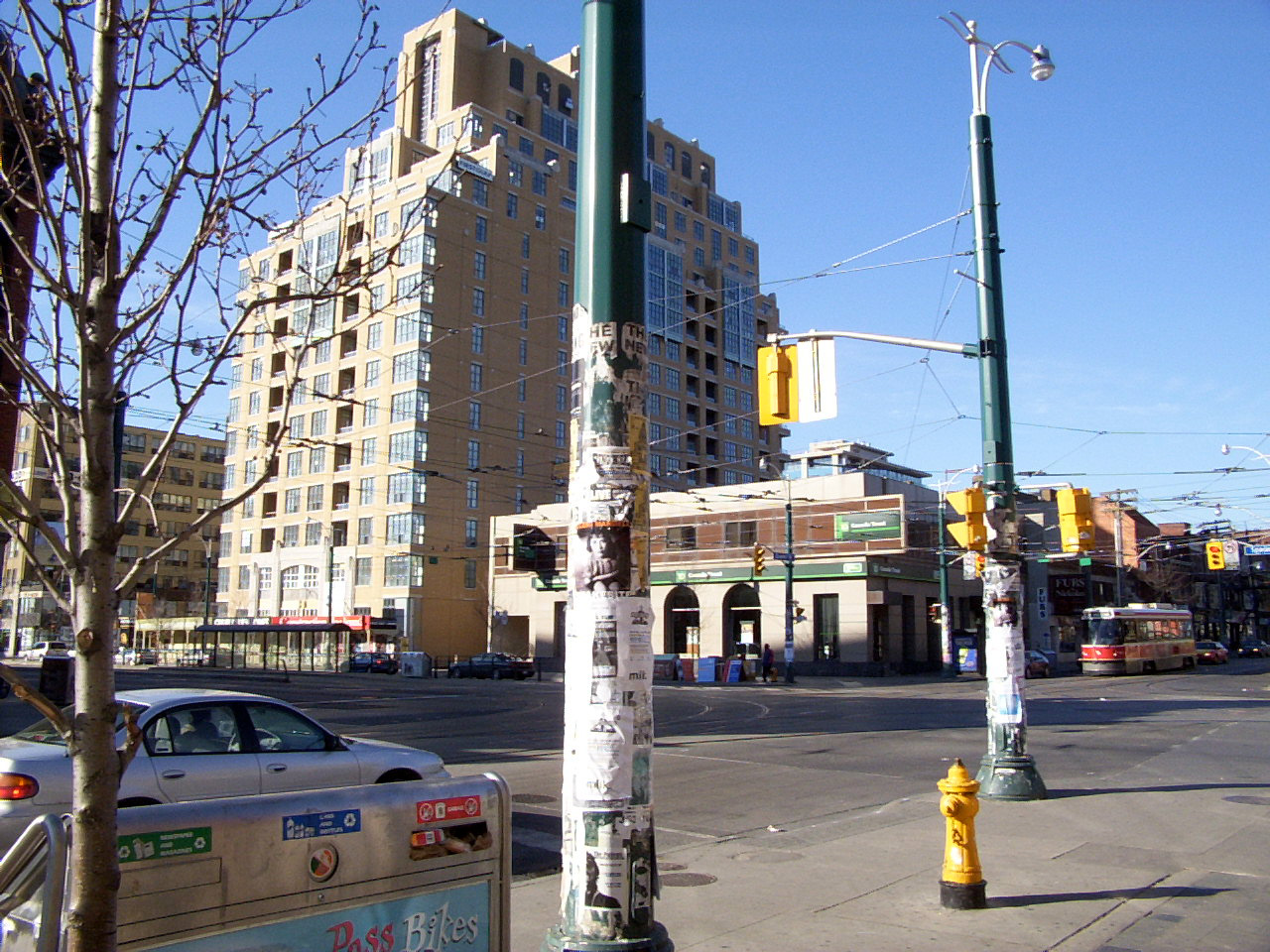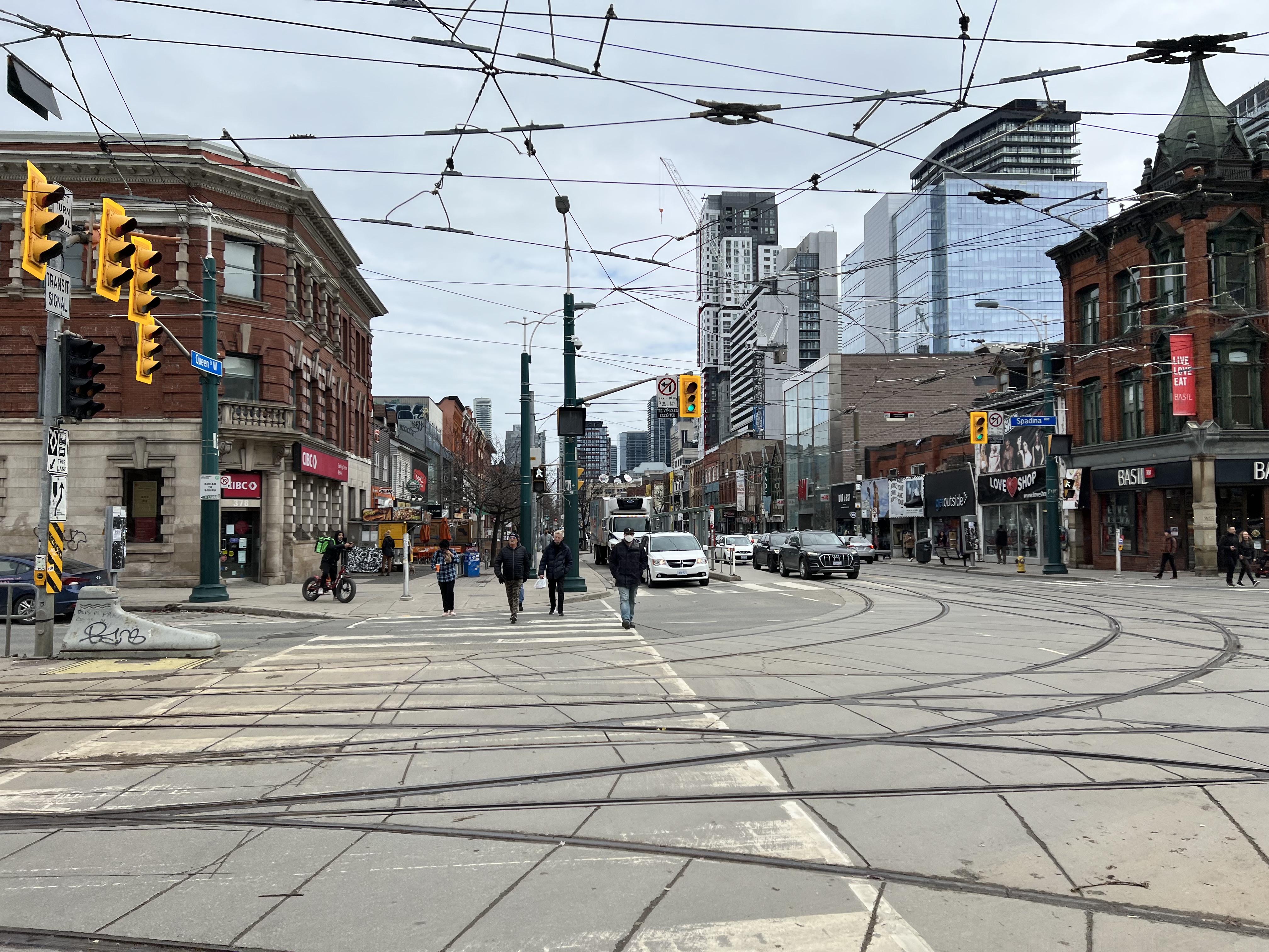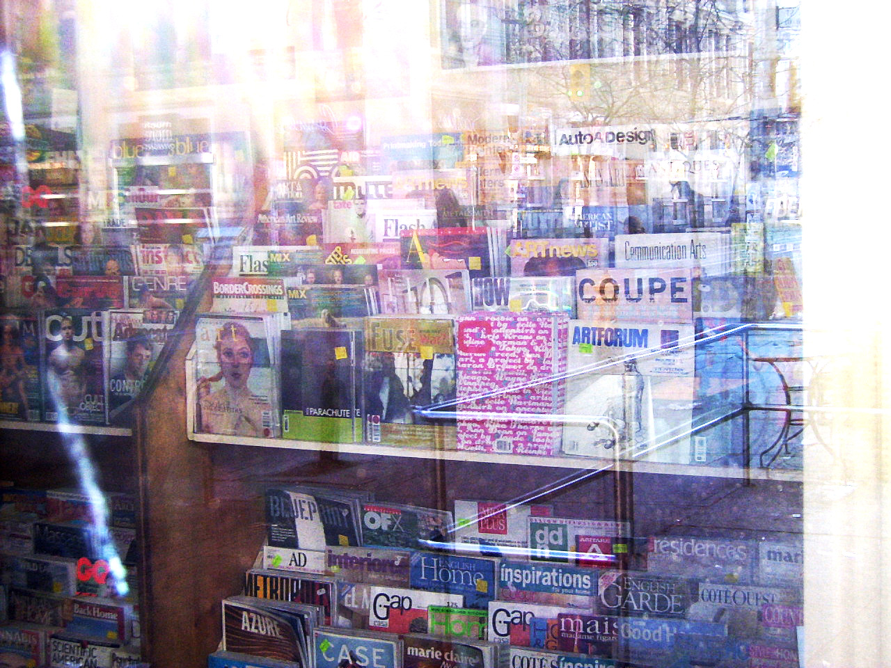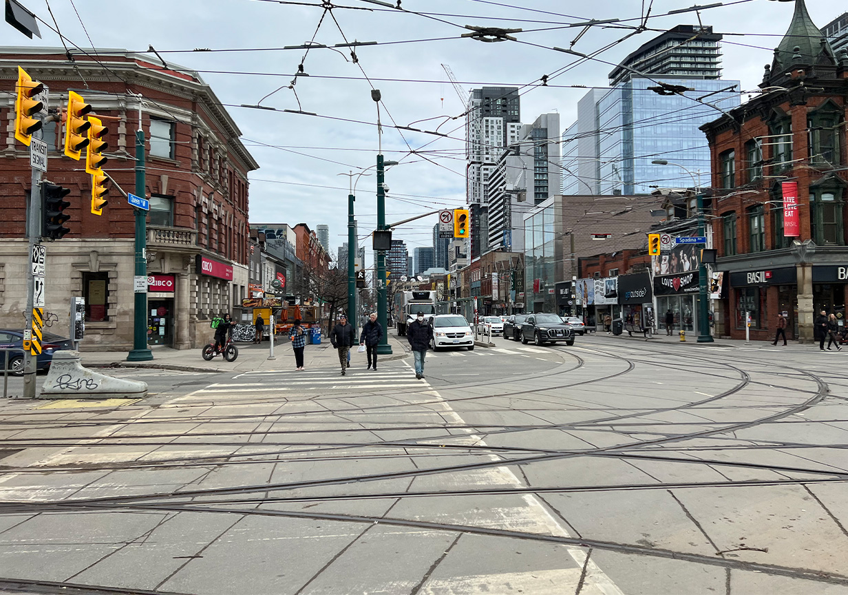 Through the window of what was Pages bookstore at 256 Queen St West, which in March 2022 was for lease and vacant.
